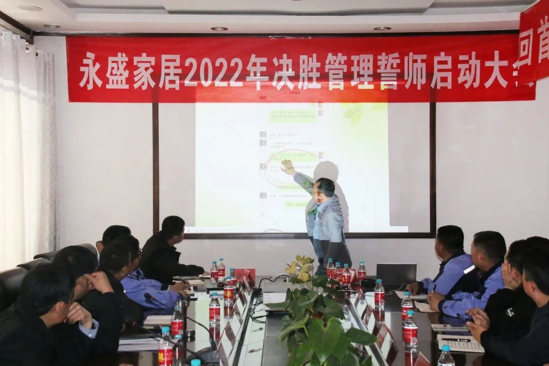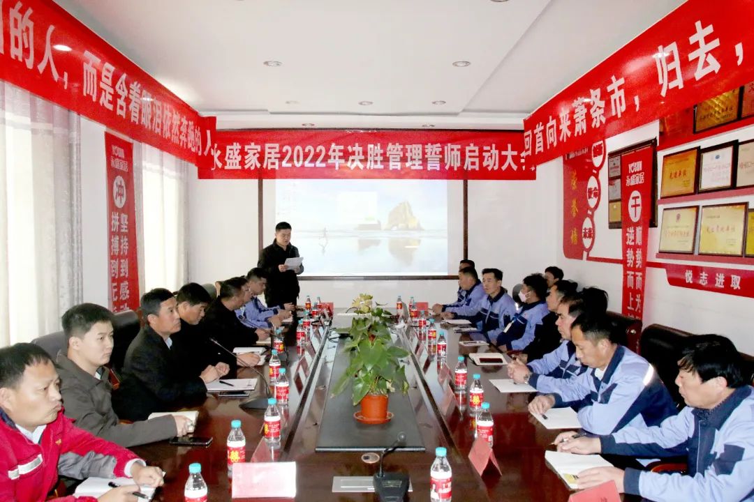 济南永盛家居科技公司董事长/总经理王法岭致辞,他表示,2022年将是机遇与挑战并存的一年,更是公司发展中的关键之年,公司进行了部门重组,确立了今年公司的发展重点及目标任务。只有做好自身管理的企业才能在竞争中茁壮成长,加强企业管理对于永盛的发展有着重大意义。希望公司员工能够积极投身于工作中,不断学习、创新发展、锐意进取、持续提升,成就自我并实现公司的更好发展。