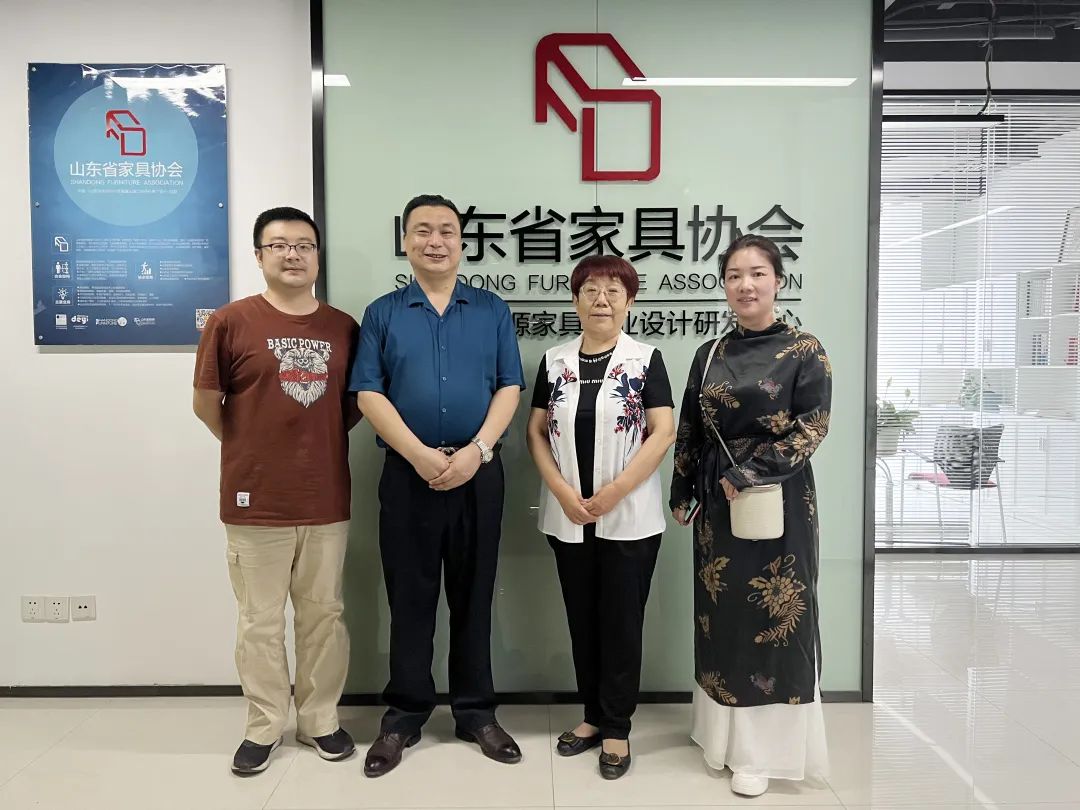 6月1日,山东当代孪生文化科技有限公司董事长吕小琪、总经理白瑞东一行到访协会,并与山东省家具协会执行会长牛广霞进行了座谈交流。