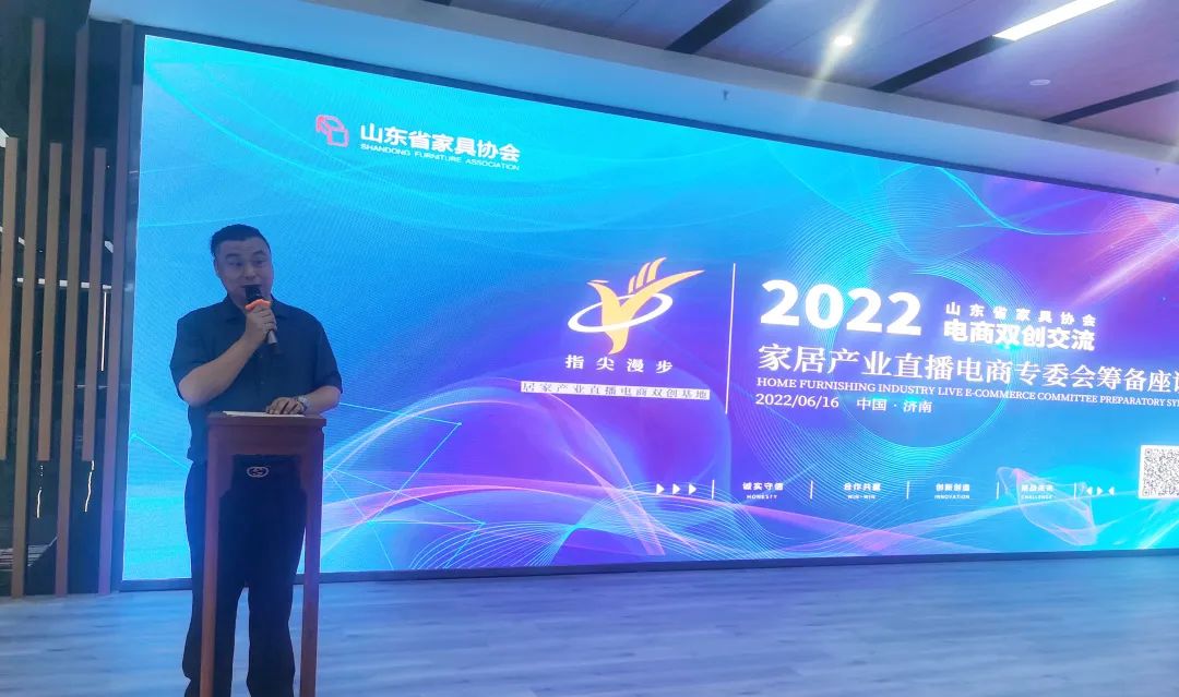 6月16日,山东省家具协会居家产业直播电商专委会筹备座谈会在济南月星家居·指尖漫步美好生活港举行,山东省工信厅轻纺处科长亓峰、山东省家具协会执行会长牛广霞、山东省家具协会副会长/秘书长韩庆生、山东新闻大厦董事长支英珉、济南月星家居商场总经理刘舒抒、北京当代孪生科技发展有限公司董事长白瑞东、山东木石科技发展有限公司董事长吕小琪、山东诸城新华宇家具有限公司董事长赵慧、淄博佰仕智能家居有限公司营销总监荣康、山东福王家具有限公司副总经理王文君、山东凤阳家居有限公司-山东分公司总经理刘凯、济南喜莱盈家具制造有限公司总经理俞美浓、山东久林家具有限公司总经理崔泽合、凯迪菲洛中国区总代理史林、山东新视觉数码科技有限公司张鲁浙、山东新视觉新媒体传媒有限公司总经理杨清、贝壳视界济南新媒体有限公司运营总监吴营,以及来自木立信家具、蓝天家居、美尔家私、百庆智能家居、光明园迪儿童家具、鲁枫家具、春源家具、泽发科技等40余行业代表共同参加会议。