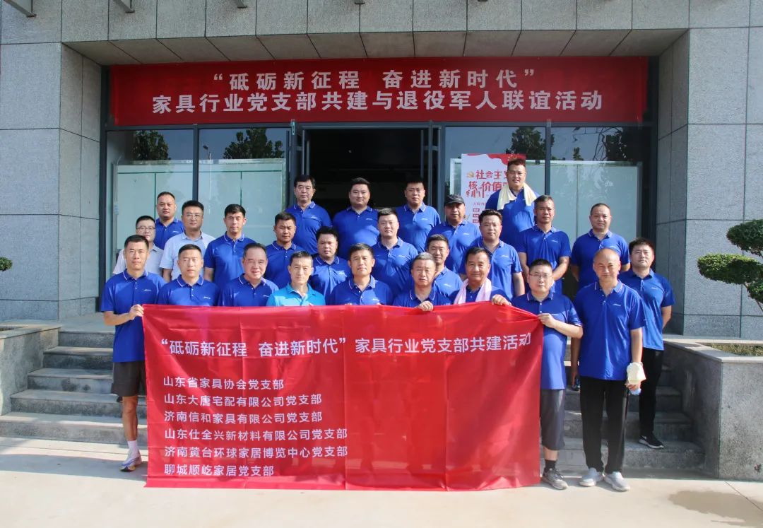 7月18日,在“八一建军节”暨中国人民解放军建军95周年来临之际,为弘扬中国军人的团结奋进、作风顽强、知难而上、乐于奉献的时代精神,由山东省家具协会党支部主办,山东大唐宅配家居有限公司党支部协办的“砥砺新征程 奋进新时代”家具行业党支部共建与退役军人联谊活动在泰安成功举办。山东省家具协会党支部、山东大唐宅配家居有限公司党支部、济南信和家具有限公司党支部、山东仕全兴新材料有限公司党支部、济南黄台环球家居博览中心党支部、聊城顺屹家居党支部党员代表,以及来自禹城福润德木业有限公司、山东光明园迪儿童家具科技有限公司、山东美迪雅家具制造有限公司、山东双蝶家具有限公司、邹平恒胜家具制造有限公司、山东简琢文化发展有限公司、山东汉唐装饰设计工程有限公司、黄台家居广场、济南漆中宝贸易有限公司等退役军人和党员代表约40余人共同参加本次活动。