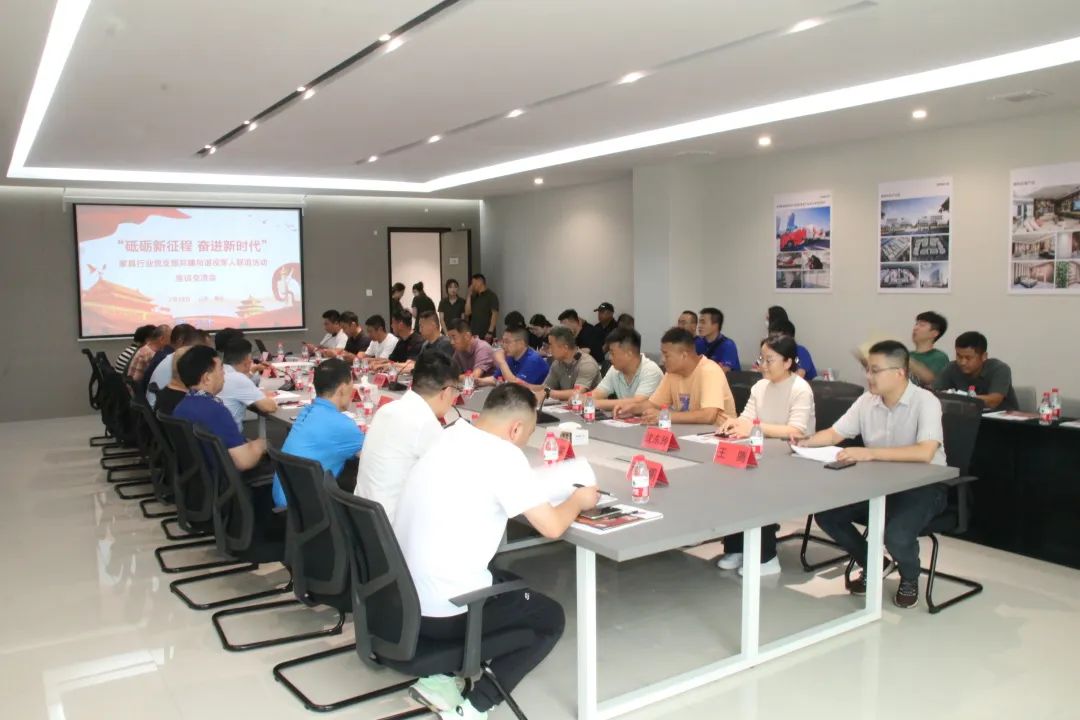 “砥砺新征程 奋进新时代”家具行业党支部共建与退役军人联谊座谈会在大唐宅配会议室举行,会议伊始,全体参会人员起立,共同演唱《中国人民解放军军歌》,唱出了大家“退伍不褪色,退役不退志”的军人本色。随后会议正式开始,山东省家具协会副会长/秘书长韩庆生、山东省家具协会副会长/山东大唐宅配家居有限公司董事长唐增胜、山东省家具协会副会长/济南信和家具有限公司董事长赵泽和、漆谷集团/山东仕全兴新材料有限公司董事长王鹏、济南黄台环球家居博览中心总经理王磊、聊城顺屹家居总经理郭永明,禹城福润德木业有限公司总经理彭力争、山东光明园迪儿童家具科技有限公司董事长王献勇、山东美迪雅家具制造有限公司董事长吴振江、山东双蝶家具有限公司总经理赵登玉、邹平恒胜家具制造有限公司总经理张勇、山东简琢文化发展有限公司董事长田绍收、山东汉唐装饰设计工程有限公司副总经理朱明超、黄台家居广场副总经理甘建华、济南漆中宝贸易有限公司副总经理尹瑶成等共同出席会议。