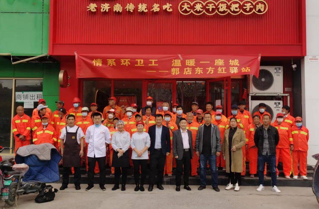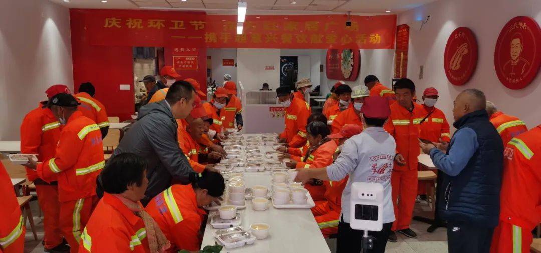天气越来越冷,昼夜温差更大,环卫工人们仍风雨无阻地坚守平凡岗位,守护着城市的健康。上午,郭店街道综合行政执法办公室主任杨新,历城政协常委、郭店东方红家居广场董事长陈兴军出席本次活动,并为环卫工人准备了丰盛的的爱心午餐。