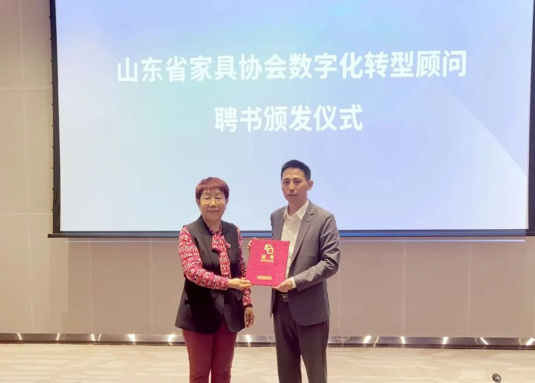 为引领行业抓住数字化经济转型机遇,山东省家具协会特别聘请数字化专家、安能集团乡村振兴项目师架构师周建军老师为山东省家具协会数字化转型顾问,现场山东省家具协会执行会长牛广霞为周建军颁发聘书。