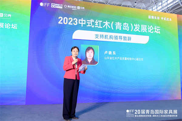 今年是全面贯彻党的二十大精神的开局之年,高质量发展是全面建设社会主义现代化国家的首要任务。山东省红木产品质量检验中心副主任卢晓东致辞时强调,品质是红木家具企业品牌化发展的重中之重。文化是一个民族的灵魂,本次论坛充分表达对国潮的关注,突出了红木家具在深耕中华优秀传统的守正创新,赋予红木家具时代内涵和生命力。此次论坛,不仅推动红木家具行业立足文化根基、促进核心内涵、提升凝聚力,更是追求了更高质量的绿色发展。