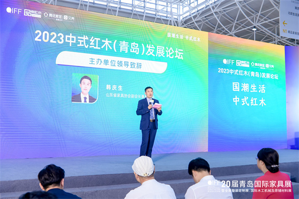 2023年迎来了家具产业成为山东新旧动能转换“十强产业”一周年。山东省家具协会副会长兼秘书长韩庆生致辞时表示,中式文化离不开传统文化的沉淀和结合,红木家具要增加产品附加值,要将都市文化和红木家具结合,将山东和全国的红木家具文化价值推动到新高度。相信第20届青岛国际家具展将为行业复苏按下了启动键,也将加速国人对中式红木家具的关注与热爱。