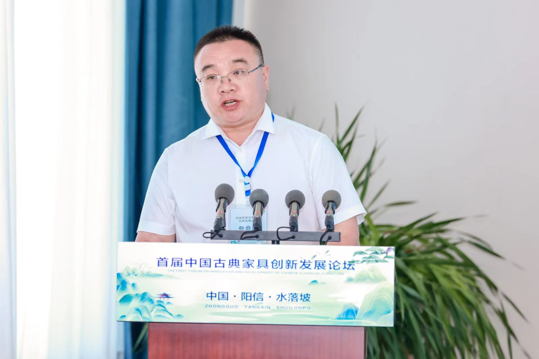 阳信县县委副书记夏庆山首先为论坛致辞,他首先对各位来宾和企业代表的到来表示了欢迎和感谢,并表示古典家具产业是水落坡镇的代表产业,也是阳信传统民俗文化的重要组成部分,更是贯彻落实国家乡村振兴战略的有力支撑,希望通过本次论坛,各位专家学者和企业代表能够为阳信民俗文化产业献言献策,壮大阳信民俗文化产业发展力量。
