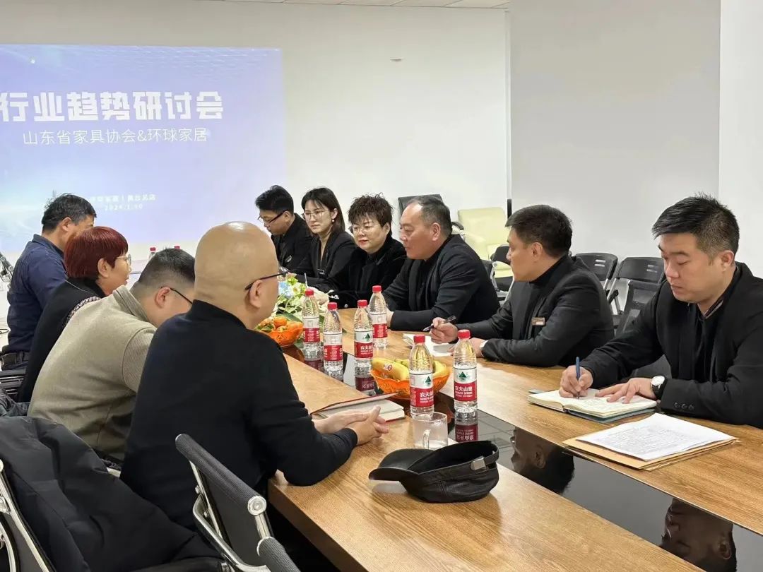 1月10日,由山东省家具协会、济南黄台环球家居博览中心联合主办的行业趋势研讨会在黄台环球家居博览中心会议室举行,山东省家具协会执行会长牛广霞、副会长/秘书长韩庆生,济南黄台环球家居博览中心董事长魏光进、总经理王磊、常务副总李斌等共同参会交流。