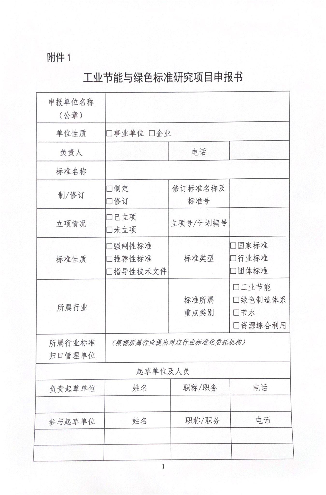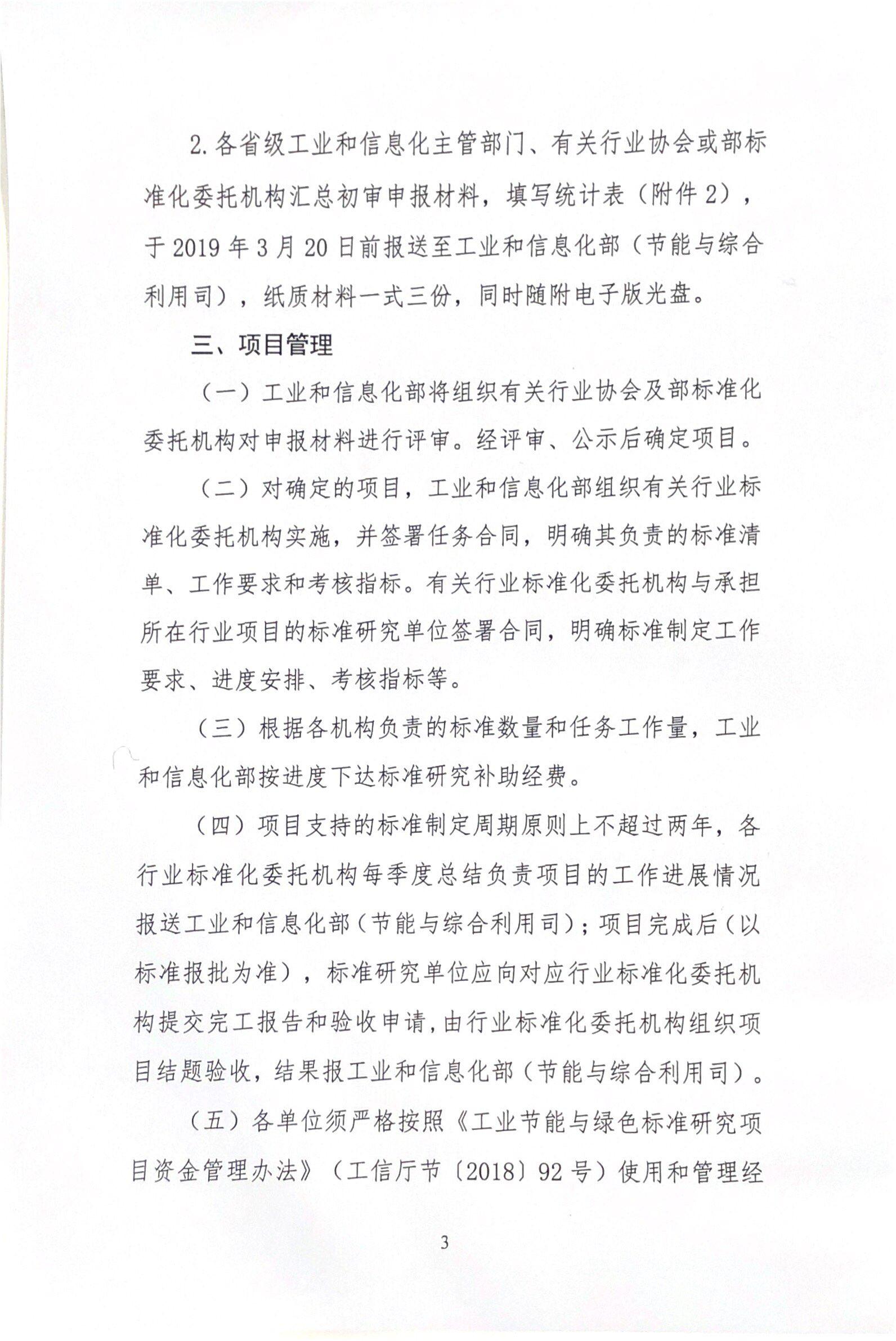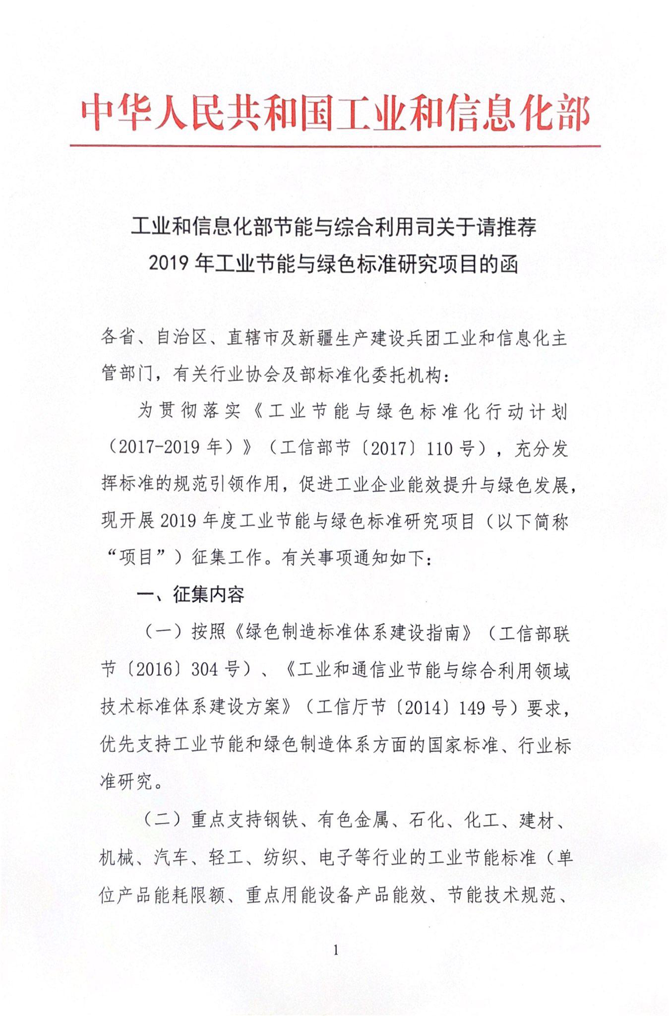 关于组织申报2019年工业节能与绿色标准研究项目的通知