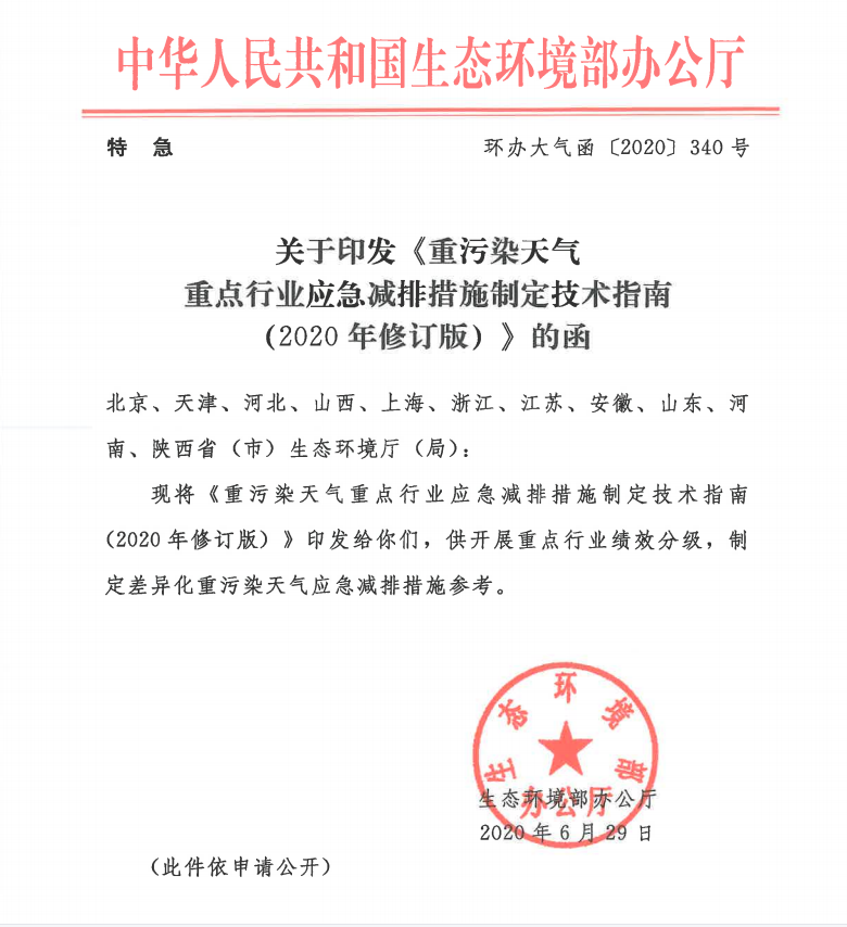 《重污染天气重点行业应急减排措施制定技术指南》 (2020 年修订版)